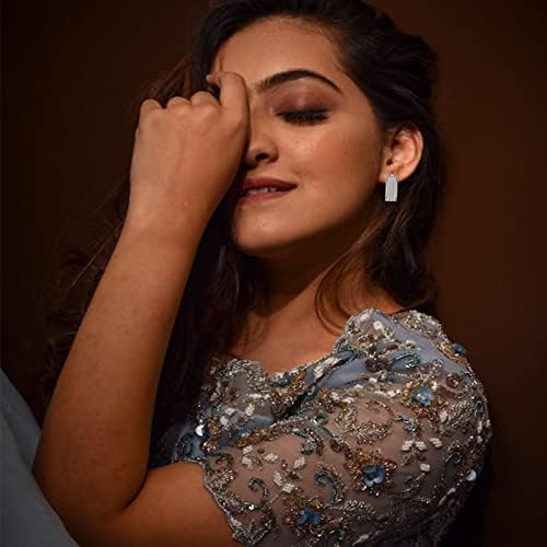 14K 镀金方晶锆石环状耳环,三排钻石 | 箭头 | 双排钻石 Huggie 耳环 女式