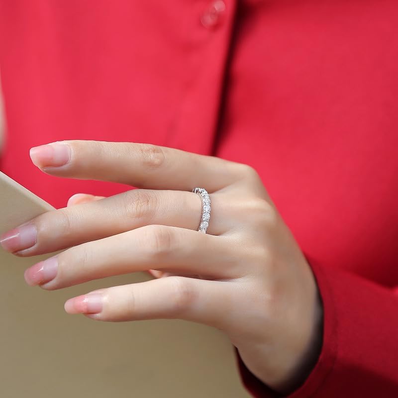 14K 白金永恒戒指 - 总重 2.2 克拉,VVS1,D 色圆形切割天然钻石爪镶,高抛光女士周年结婚戒指,带来无与伦比的光泽和纯度