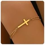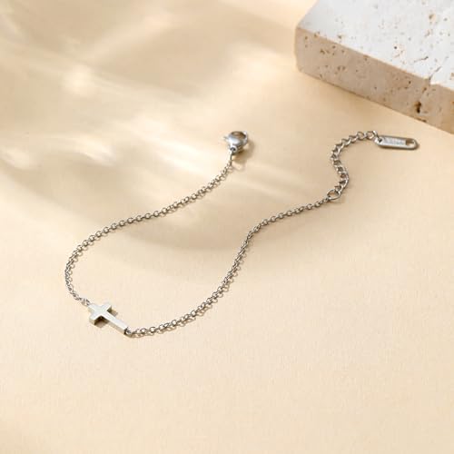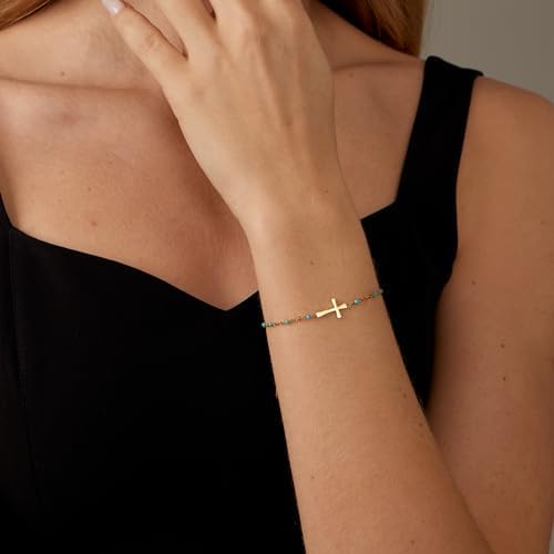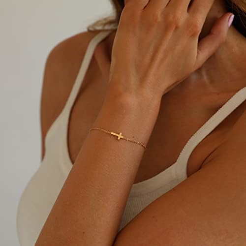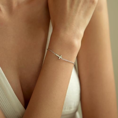 PAVOI 14K Gold Plated Sideways Cross Bracelet for Women | Religious Cubic Zirconia Station Bracelet | Confirmation Gift