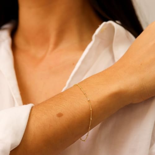 18K 金珍珠串珠手链女士可调节不锈钢精致薄金盒古巴扭链手链伴娘首饰送给女孩的礼物