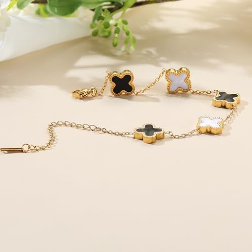18K Gold Plated Clover Lucky Bracelet for Women White/Black/Red/Green Link Bracelets Cute Link Bracelets Jewelry Gifts Trendy for Women