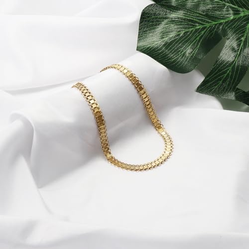 18K 镀金 U 形竹锁链回形针链可调节项链女士镀金首饰礼品