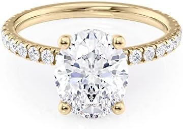 2 至 6 克拉椭圆形莫桑石订婚戒指 - 1/4 克拉圆形天然钻石 - 14K 金(G-H/VS,G-H/SI,cttw,DEW)女士结婚承诺戒指 尺寸 4 至 11 美国制造