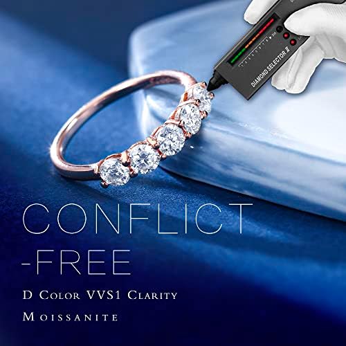 女式 5 颗宝石莫桑石戒指,3.75 毫米 D 颜色 VVS1 净度实验室钻石周年纪念戒指 14K 白金填充 S925 纯银 5 石莫桑石婚戒女士珠宝礼品