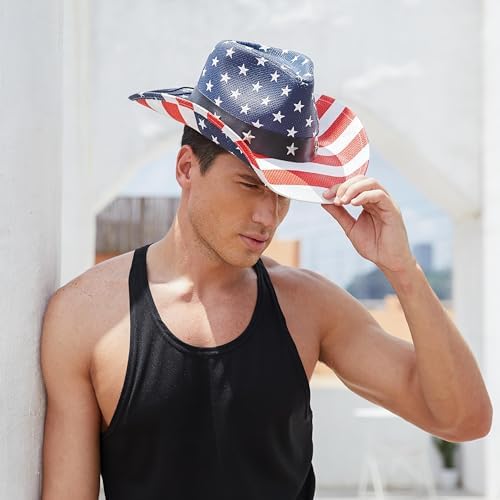 American Flag Cowboy Hat Patriotic USA Western Hat 4th of July Party Parade Rodeo Unisex Cowboy Cowgirl Hat