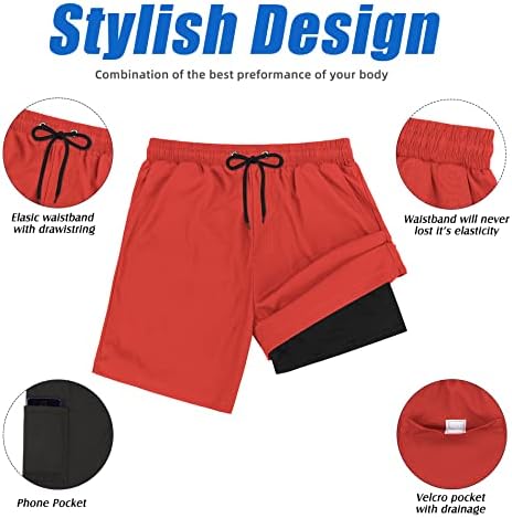 IRELIA 2 件装男孩 2 合 1 泳裤 平角短裤 压缩游泳短裤 速干泳衣