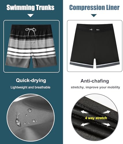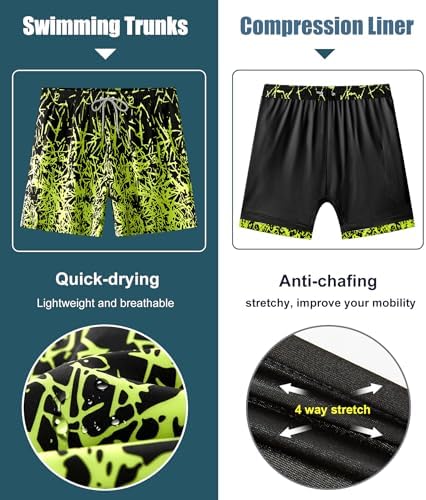 maamgic 男孩游泳裤,带压缩衬里,幼儿男孩泳衣,快干,4 向弹力泳裤