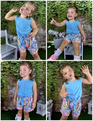 Arshiner Girl's 2 Piece Outfits Tie Knot Tank Top and Paperbag Waist Pocketed Summer Short Sets