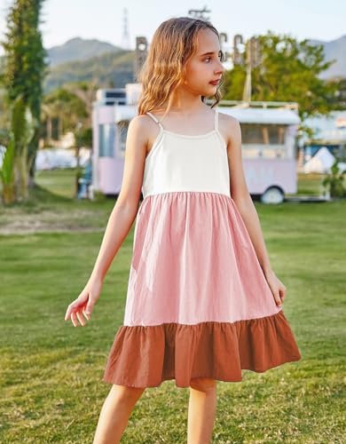 Arshiner 女童夏季背心裙细肩带纯色亚麻中长款连衣裙休闲吊带连衣裙