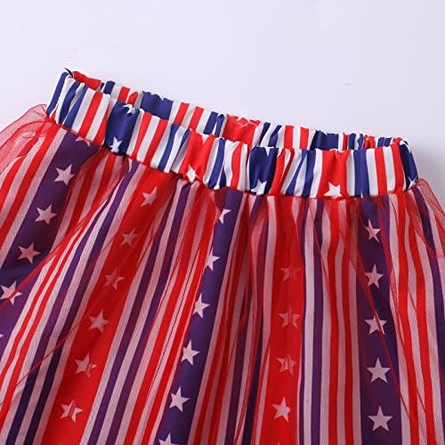 女婴 7 月 4 日服装薄纱蓬蓬裙套装幼儿儿童美国国旗心形印花连衣裙 2-8 岁