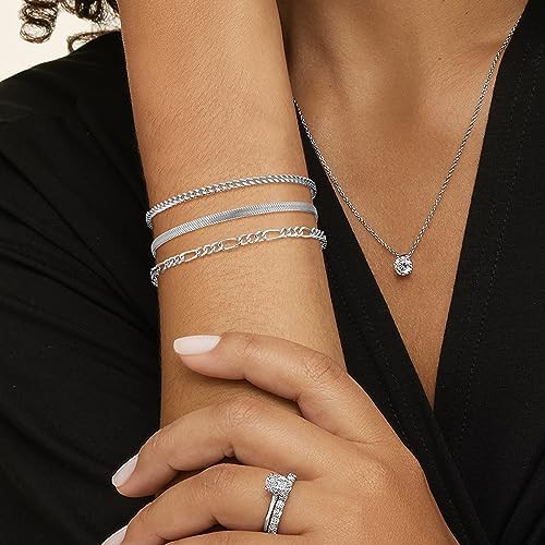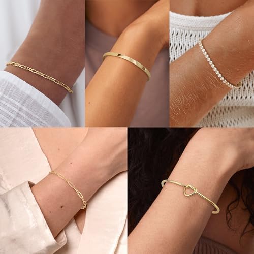 Bangle Cuff Bracelet Set for Women 14K Gold Plated/925 Sterling Silver Plated Bracelet Stack Adjustable Tennis/Beaded/Paperclip/Cuban Link Chain Bracelets Jewelry Accessories for Women