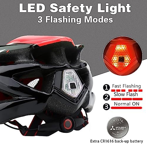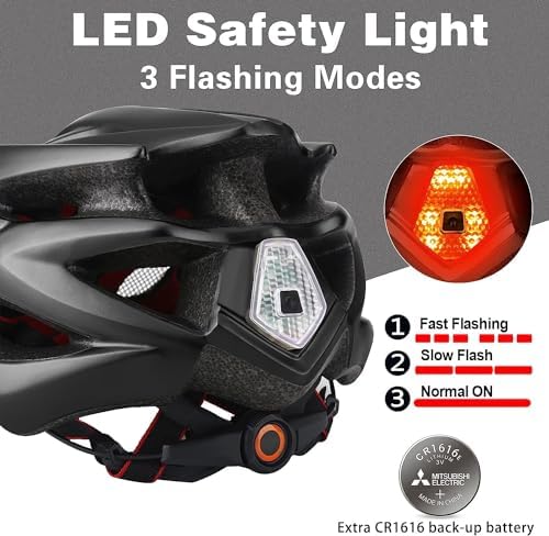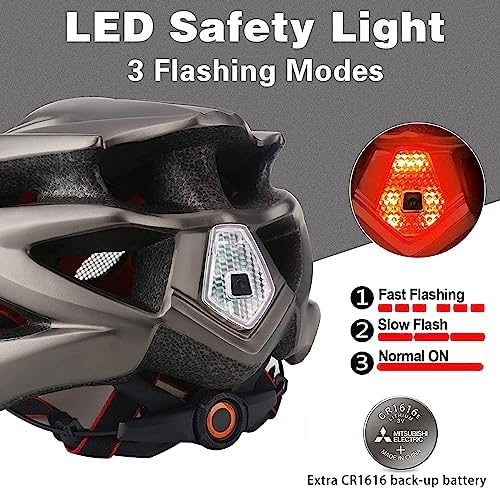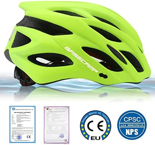 Basecamp 自行车头盔男女带 LED 安全灯可拆卸遮阳板轻质自行车头盔可调节透气山地和公路自行车头盔成人 (BC-10)