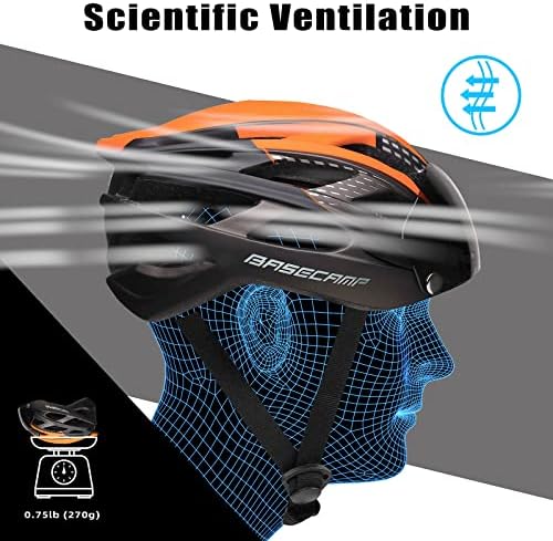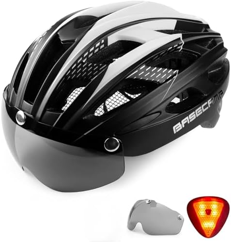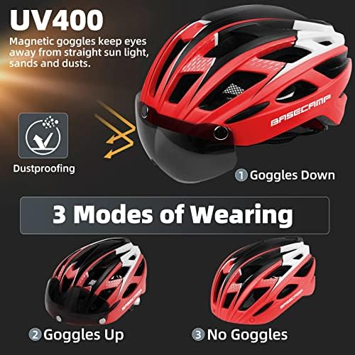 自行车头盔,Basecamp 自行车头盔带后灯和可拆卸磁性护目镜轻质自行车头盔可调节成人男士女士山地和道路 (BC-069)