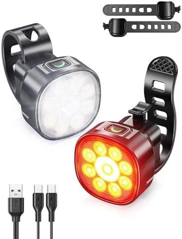 自行车灯,6 + 4 种模式可充电 C 型自行车灯,适合夜间骑行,防炫目高流明 LED 自行车灯前后,自行车灯套装前后,适合骑自行车、骑自行车、公路
