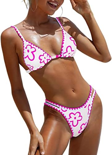BIKINX 女式泳装性感丁字裤微型比基尼 Ditsy 花卉两件套泳衣拼色抹胸游泳上衣