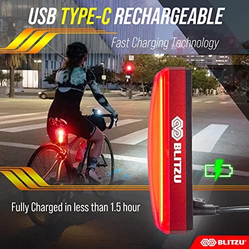 BLITZU 2024 Cyborg 200H 自行车大灯或 200T 尾灯 USB-C 可充电 LED 自行车灯套装前后夜骑行,骑行安全反射器配件