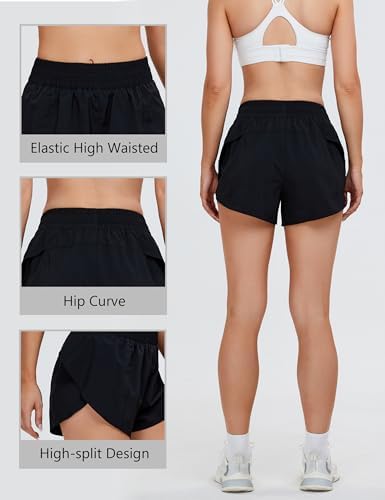 BMJL 女式运动短裤高腰跑步短裤口袋运动短裤健身房弹性锻炼短裤