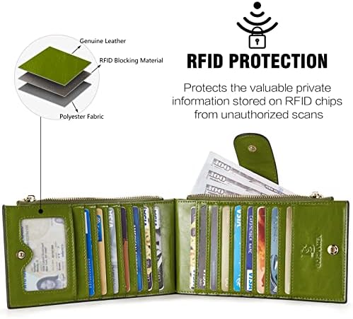 BOSTANTEN 女式皮革钱包射频识别屏蔽超薄钱包卡夹带拉链口袋
