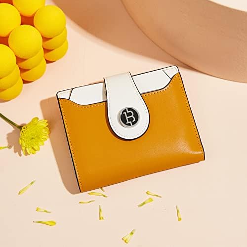 BOSTANTEN 女式皮革钱包射频识别屏蔽小双折拉链口袋钱包卡包钱包带证件窗口