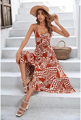BROVAVE 女式 2024 夏季休闲波西米亚背心裙圆点细肩带 V 领飘逸中长款连衣裙
