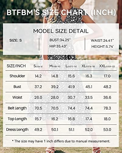 BTFBM 女式夏季波西米亚花卉休闲裹身 V 领褶皱帽无袖腰带 A 字褶下摆中长款太阳裙白色