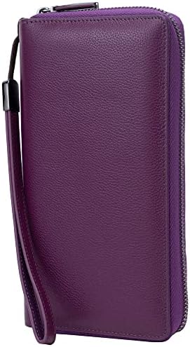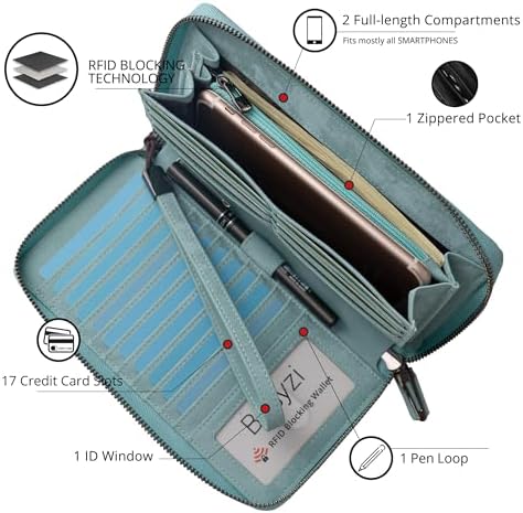 Bveyzi 女式 RFID 屏蔽钱包皮革环绕式手机手拿包大容量女士旅行钱包腕带
