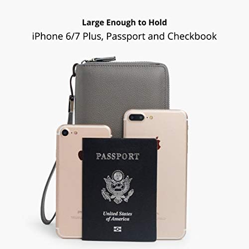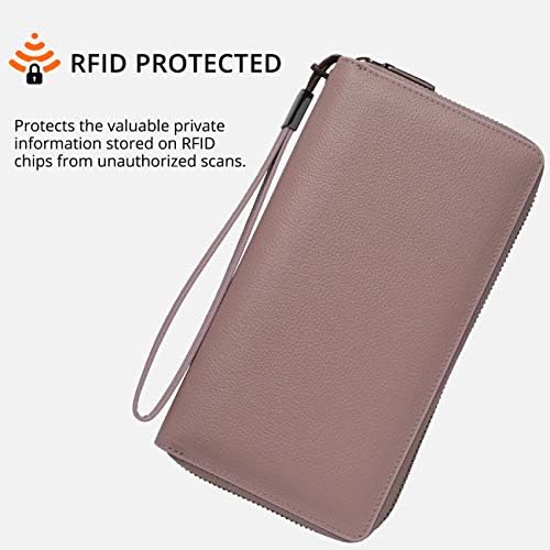Bveyzi 女式 RFID 屏蔽钱包皮革环绕式手机手拿包大容量女士旅行钱包腕带