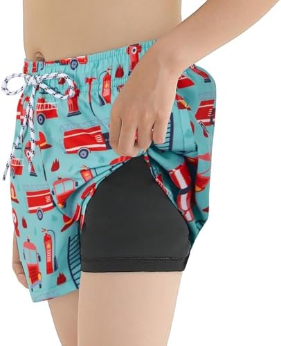IRELIA 2 件装男孩 2 合 1 泳裤 平角短裤 压缩游泳短裤 速干泳衣