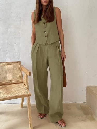 Cicy Bell 女式 2 件套 V 领露脐背心外套和阔腿西装裤套装