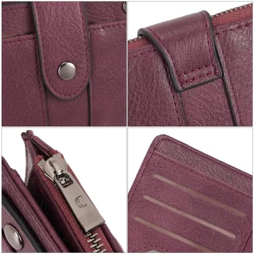 CLUCI 女士小号钱包皮革双折多迷你卡片夹收纳袋设计师女士拉链零钱带可拆卸 ID 窗口
