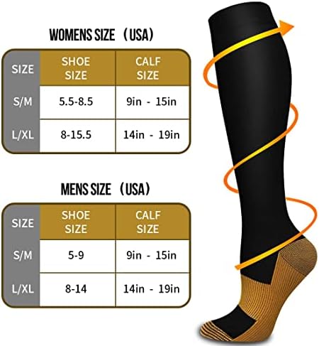 COOLOVER 男女铜压缩袜(6 双)- 跑步、运动、旅行的最佳支撑