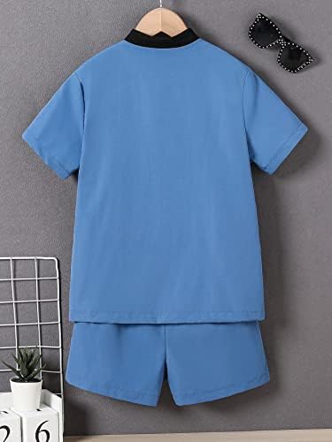 COZYEASE 男孩 2 件套条纹印花纽扣衬衫带抽绳腰短裤