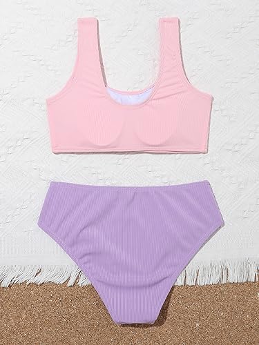 COZYEASE 女童 2 件套泳衣拼色细肩带可爱比基尼套装高腰泳衣