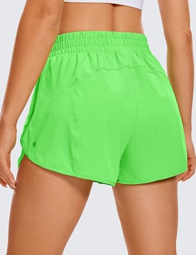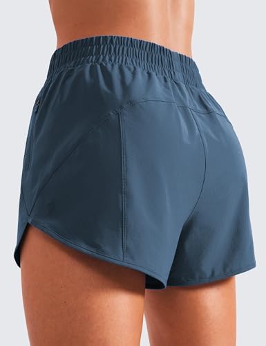CRZ YOGA 女式高腰跑步短裤网眼内衬 - 7.62 厘米海豚速干运动健身房运动短裤拉链口袋