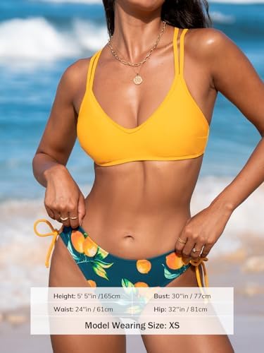 CUPSHE 女式泳衣比基尼套装两件套泳衣交叉后背系带侧带双细肩带