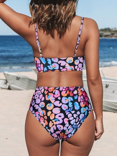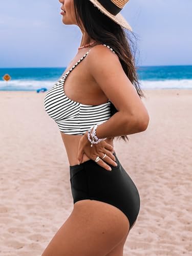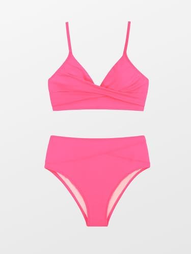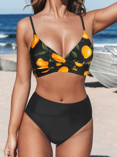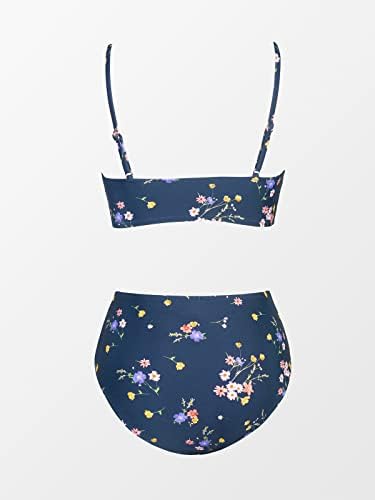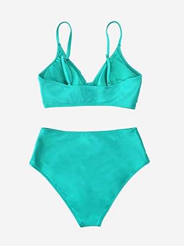 CUPSHE 女式比基尼套装两件套泳衣高腰 V 领前部扭结可调节细肩带泳衣