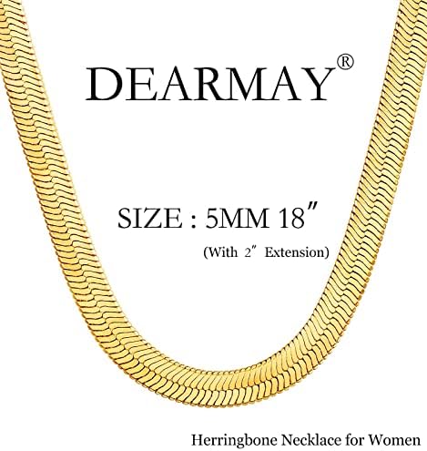 DEARMAY 女式14K 金项链,精致金色人字形颈链女士薄层粗蛇链项链首饰适合少女礼物