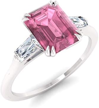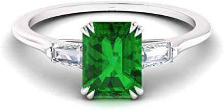 Diamondere 14K 白金天然认证宝石和钻石长方形订婚戒指 | 0.67 克拉女士三钻戒指,美国尺码 4 至 9