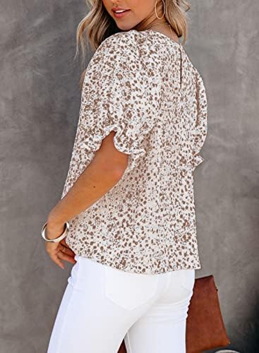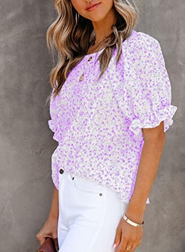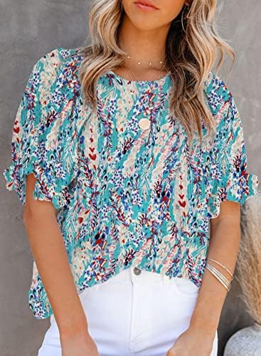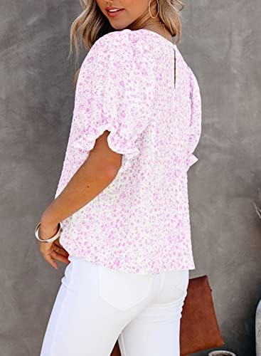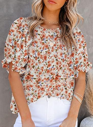 Dokotoo 女式花卉印花衬衫圆领缩褶泡泡袖衬衫休闲娃娃装上衣