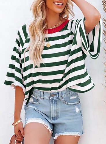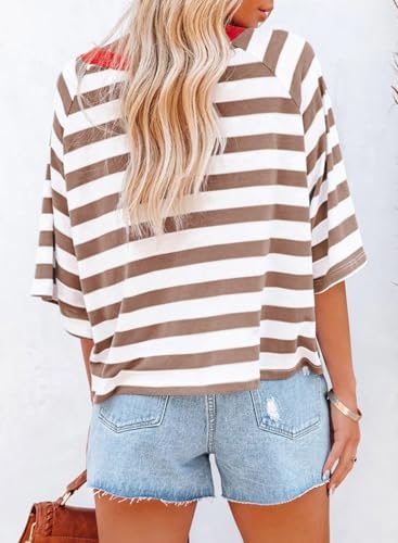 Dokotoo 女式条纹 2024 时尚 T 恤女式拼色设计宽松基本款 T 恤