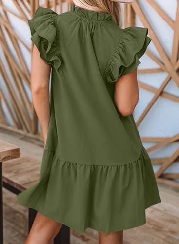 Dokotoo 女式 2024 夏季 V 领抽绳荷叶边帽短袖侧口袋迷你连衣裙背心裙