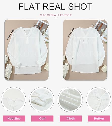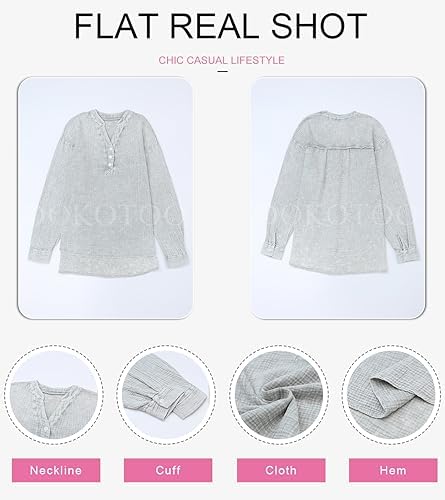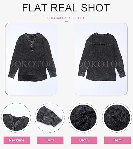 Dokotoo 女式休闲纽扣 V 领长袖衬衫超大纯色衬衫上衣