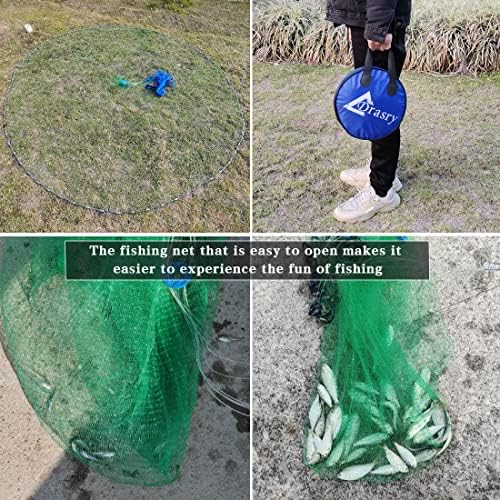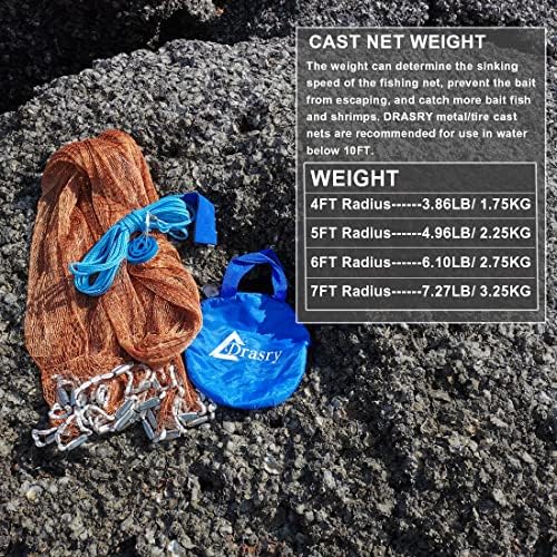 Drasry 海水美国钓鱼铸造网 0.95 厘米网格尺寸适用于诱饵虾陷阱鱼重型铅坠网 3 英尺/4 英尺/5 英尺/6 英尺/7 英尺/8 英尺/9 英尺/10 英尺半径
