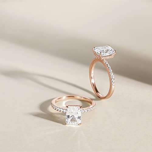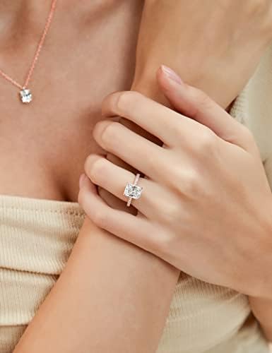 EAMTI 3CT 925 纯银订婚戒指辐射式切割单粒方晶锆石 CZ 婚礼定情戒指女士婚戒尺寸 3-11, 金属, 方晶锆石