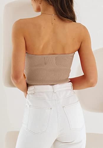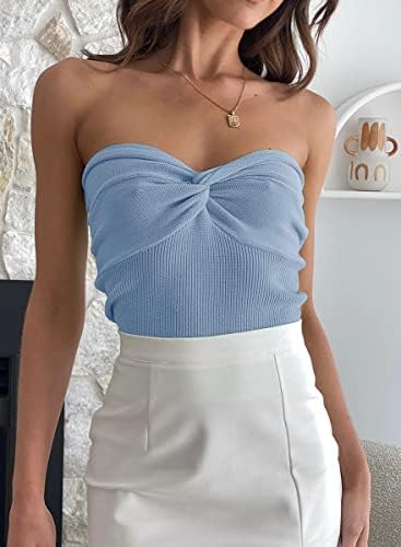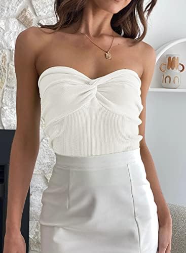 EFAN 女式抹胸上衣夏季毛衣扭结前针织抹胸无肩带罗纹无袖 Y2K 紧身胸衣露脐上衣