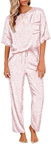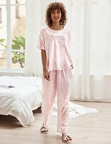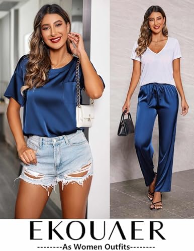 Ekouaer 女式缎面丝滑睡衣套装短袖衬衫带长睡裤套装柔软 PJ 家居服