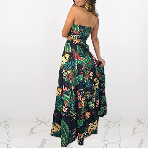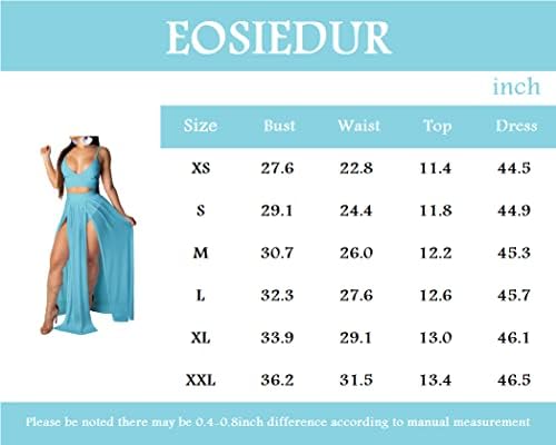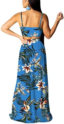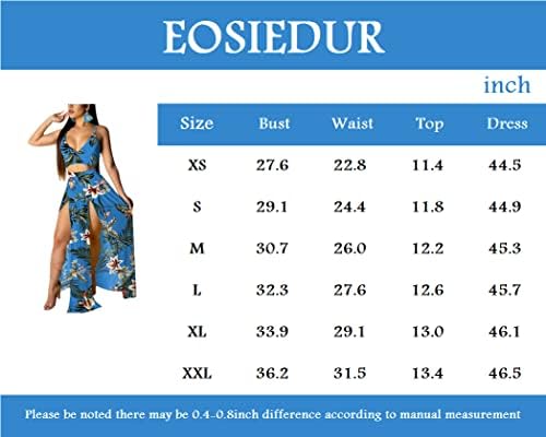 EOSIEDUR 女式雪纺波西米亚花卉印花 2 件套露脐吊带上衣和开叉沙滩派对长裙