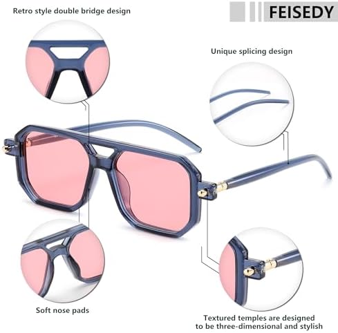 FEISEDY 复古方形 70 年代平面飞行员太阳镜女士男士经典复古时尚镜框 UV400 太阳镜 B2622