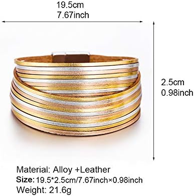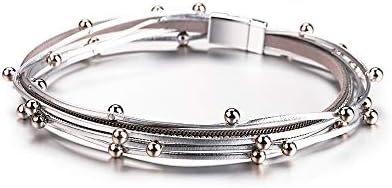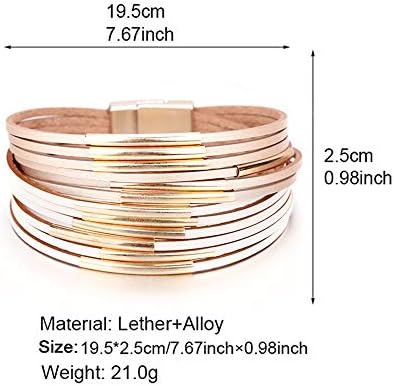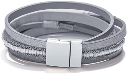 Fesciory 女士皮革缠绕手链,波西米亚豹纹多层水晶珠袖口手链首饰