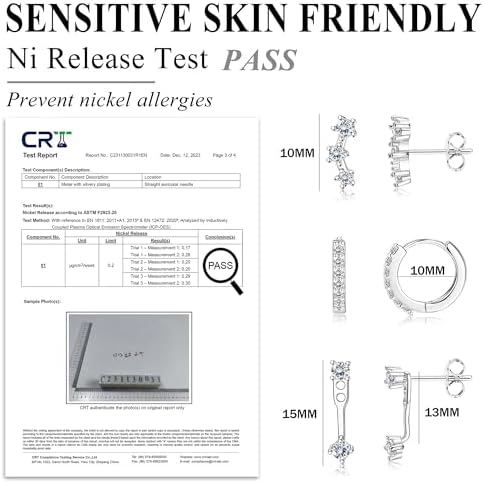 FIASASO 3 对纯银耳钉套装适用于女士 青少年 925 纯银软骨耳环耳钉 Huggie 耳环套装